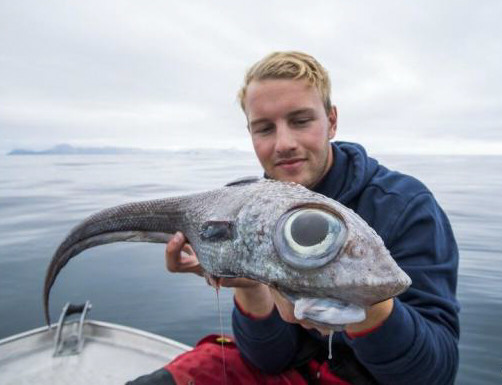 海钓趣事多 外国男子钓到一条怪鱼 双眼拳头大小神似外星生物 腾讯新闻